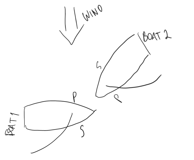 - For boats on different tacks: the boat on port tack must give way to the boat on starboard tack. (Rule 10)